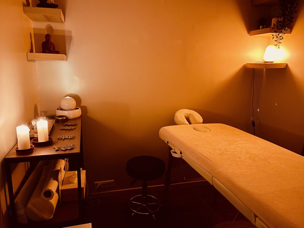 Vous vous allongez confortablement sur une table de massage (ou restez assis si nécessaire), en restant entièrement habillé. Une couverture peut être proposée pour assurer un confort optimal. Une ambiance apaisante, avec une lumière douce et une musique relaxante favorise la détente.